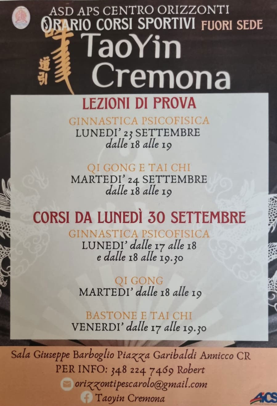 Ricominciano i corsi di Tao Yin Cremona per l’anno 2024-2025.